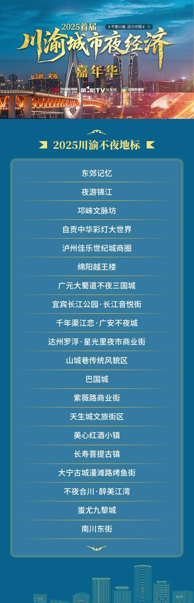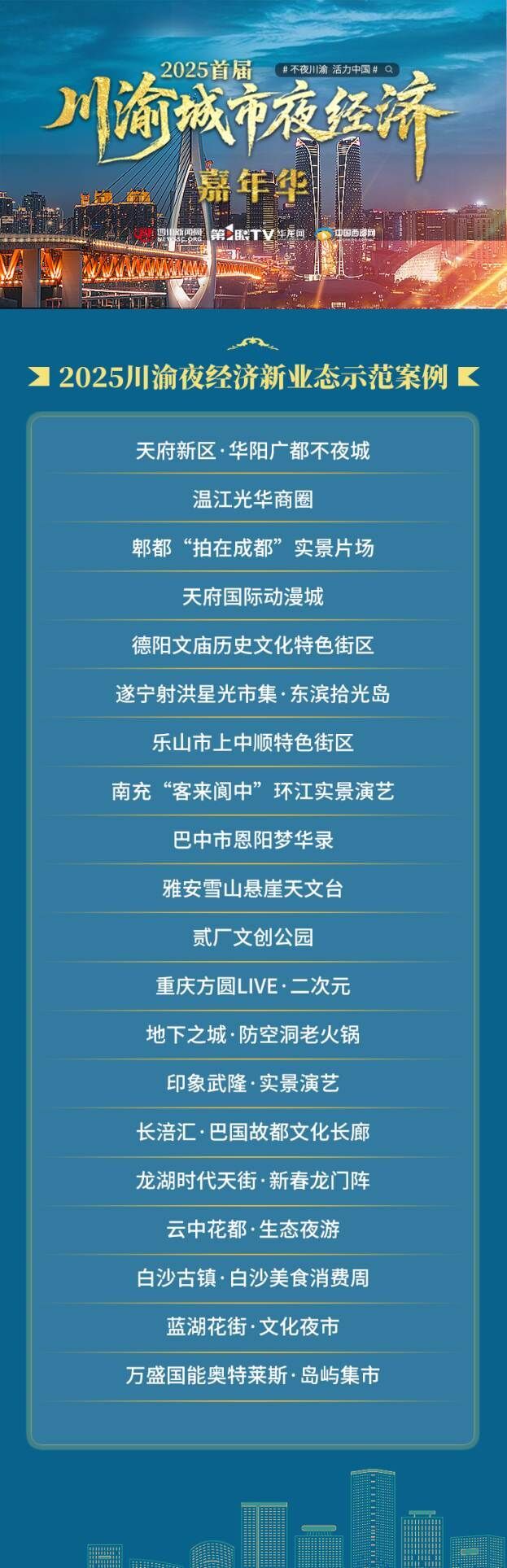 “2025川渝不夜地标”及“2025川渝夜经济新业态示范案例”名单: