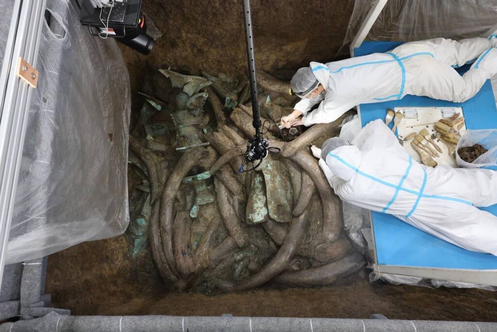 在三星堆论坛上,象牙保护技术的进展也进行了公布。成都市文物考古研究院副研究员蒋璐蔓介绍,在脱水加固等关键技术的帮助下,目前饱水象牙已经可以直接展出。记者还了解到,三星堆青铜铸造技术也有“独家秘笈”在商代晚期形成以分铸为核心,兼用浑铸、锻造的创新铸造技术体系。独特的“芯骨—条形芯撑”技术,有效解决了细长、弯曲器物的成型难题。而三星堆遗址祭祀坑的年代,通过碳十四年代测定显示,三号、四号、六号、八号祭祀坑埋藏年代有95.4%的概率处于公元前1201年至公元前1012年,相当于商代晚期。此外,三星堆一、二、三、四、七、八号坑中还发现可拼对的同一器物残片,表明埋藏年代相同。该成果为厘清祭祀坑年代和构建遗址精细年代框架提供了重要依据。