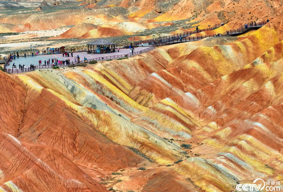 甘肃张掖:七彩丹霞地貌红黄交织,宛如天然纹理画。