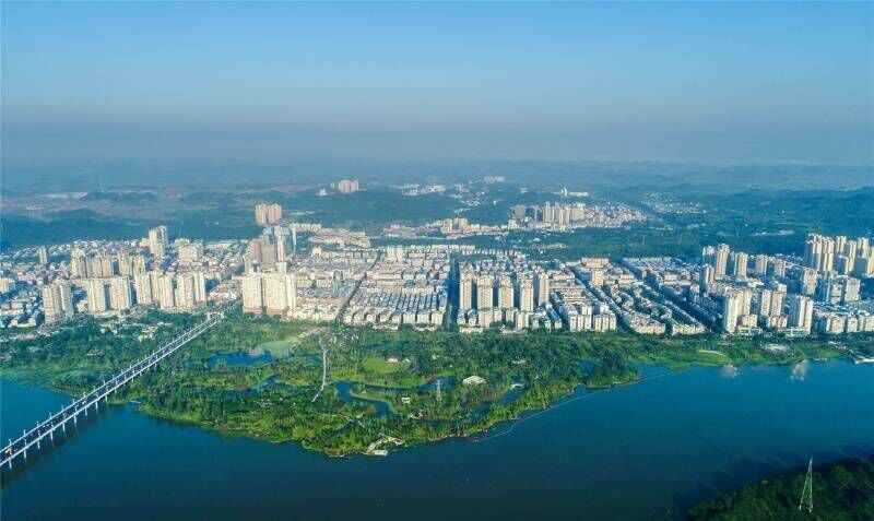 登上直升机俯瞰,国家级遂宁经济技术开发区的轮廓,在云端下渐次清晰。