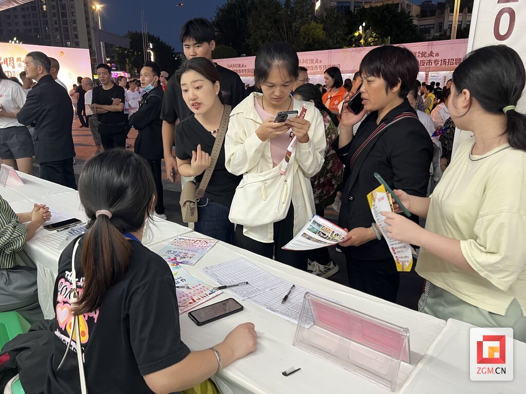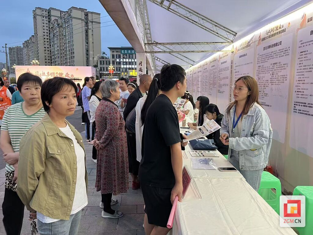近日,富顺县2025年“月是故乡明 照亮就业路”中秋夜市专场招聘会在时代广场举办。活动由县人力资源社会保障局主办,在延续“夜市+招聘”特色基础上创新服务模式,为企业与求职者搭建高效对接平台,让群众在家门口就能寻得就业机遇。
