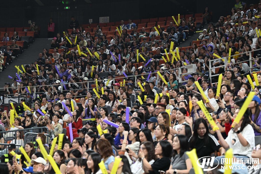 从赛事引入,四川文旅先让“追星”成为游客入川理由。9月27日当晚,成都五粮液文化体育中心场馆内人气爆棚。近万人一起尖叫、打call。有王鹤棣粉丝从外地远道而来,也有家门口的崽儿终于盼来了近距离追星。