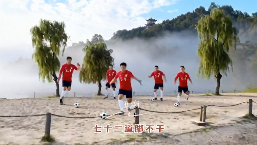巴国文化的古老神秘、古蜀文明的灿烂辉煌、三国风云的壮志豪情,如同无形的力量,为现代足球注入了独特的灵魂;而自然之美更是成为MV的“流动画布”——光雾山漫山红遍的红叶燃动着热情,诺水河溶洞的奇幻光影勾勒出神秘,恩阳古镇的青石板路承载着岁月,这些巴中标志性景区的景致与球员们奔跑的身影相互映衬,红的热烈、绿的鲜活,色彩交织间恰如球员们那颗滚烫的足球心,“热血如丹”的意境被展现得淋漓尽致。