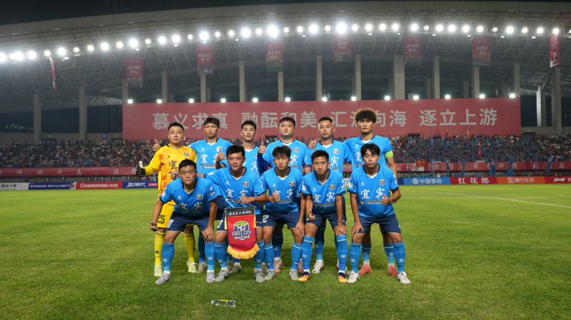 刘昭其与球队成员一同亮相“川超”宜宾首战