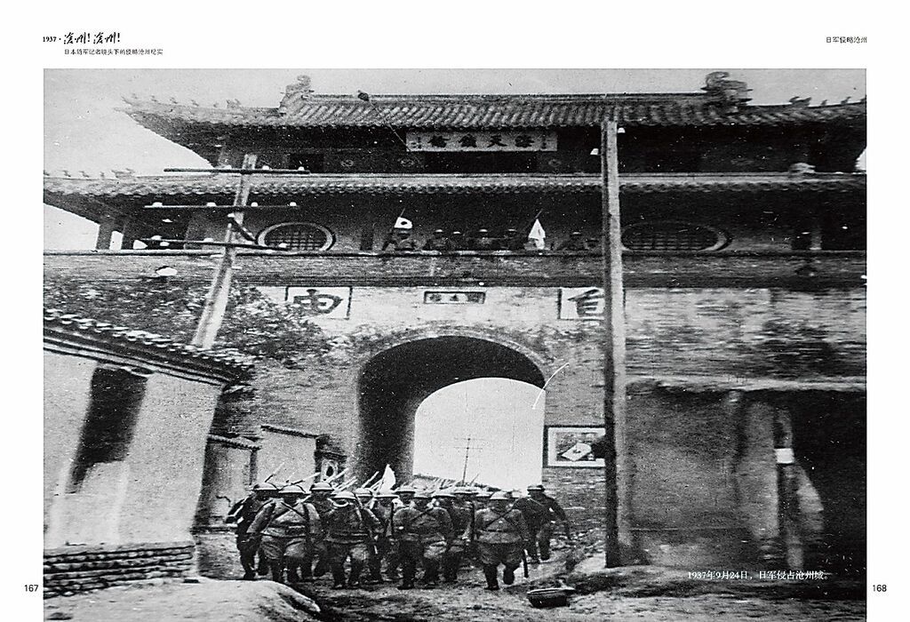 2015年,田书生将这些照片编辑成册,出版了《1937·沧州!沧州!》一书。翻开书页,80年前尘封的一幕幕立刻呈现眼前:津浦线上一路入侵的日军、狂轰滥炸沧州城的日军飞机、硝烟战火中孤独孑立的闻远楼、沧州城耀武扬威的日本兵……一张张照片,一幕幕场景,让人心痛不已。