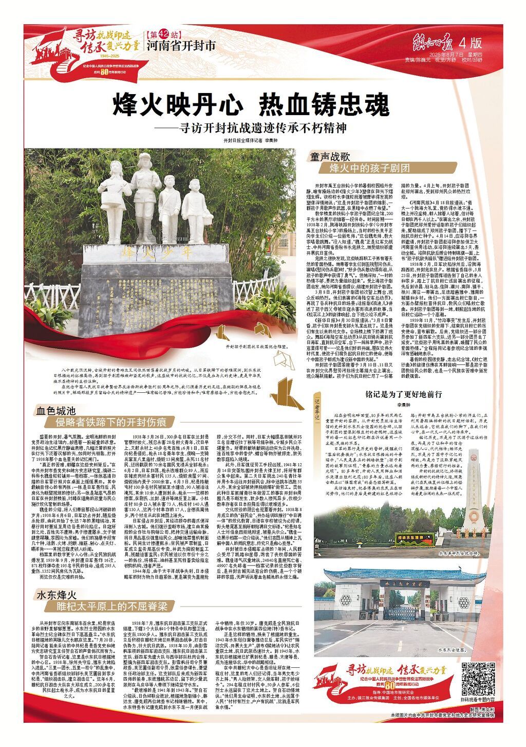 采访结束时,杞县傅集的农民正在田间劳作,他们的身后是新建的红色旅游公路;开封市禹王台扶轮小学的师生们,正利用暑期编排新的抗日题材话剧。历史从未远去,它就在我们的脚下,在我们的心中,在一代又一代人的传承中。