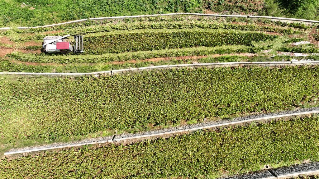 “以前,这里都是些零碎的坡地,村民少量地种些水稻或是玉米,大部分土地都处于荒芜状态。”巴雄军介绍,2022年,通过高标准农田建设,零散的坡地被规整为方块梯田,方便机械化作业。同时,通过对土壤进行改良,修建灌溉沟渠,荒地之上重新生长起两季庄稼,也为山区小县带来了更多农业发展可能性。