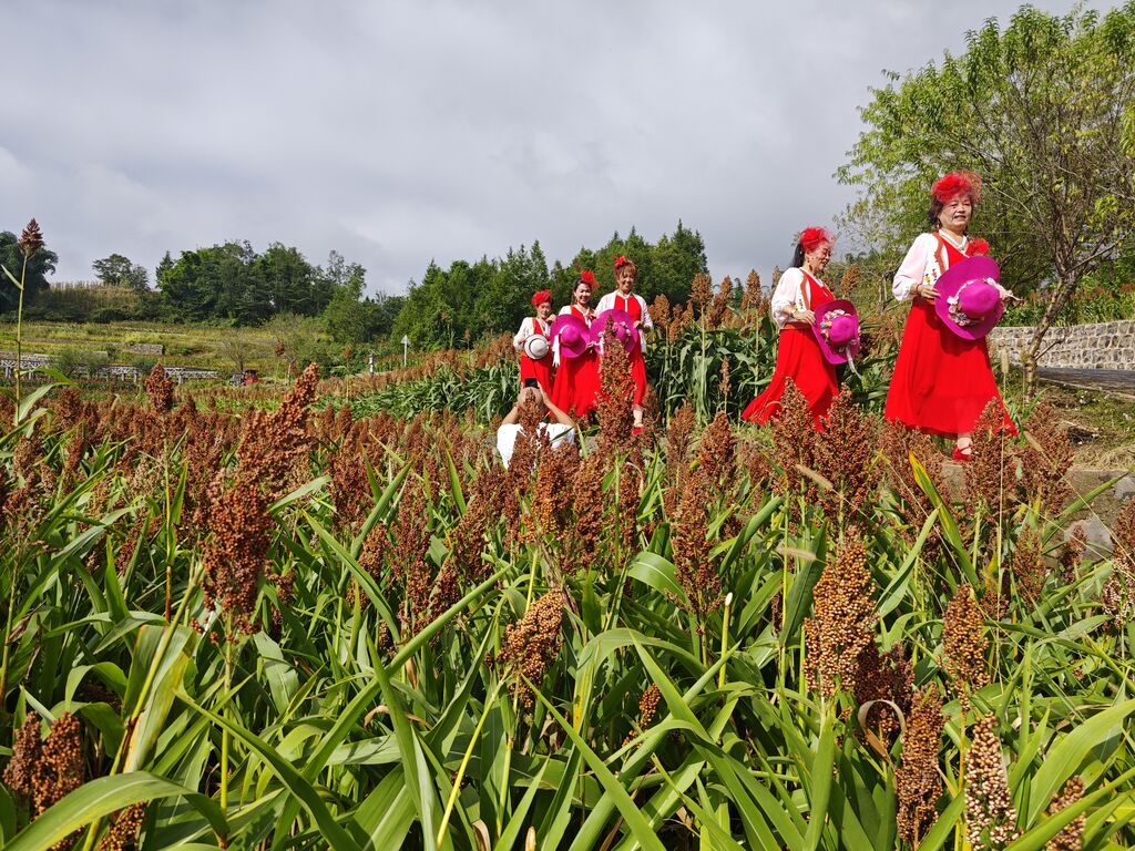 今年9月初,大同基地的350亩高粱陆续成熟。亮丽的颜色、成片的规模,经过互联网传播,使这片高粱地成功在雅安人的社交网络“出圈”,吸引了一批又一批游客前来打卡旅游。