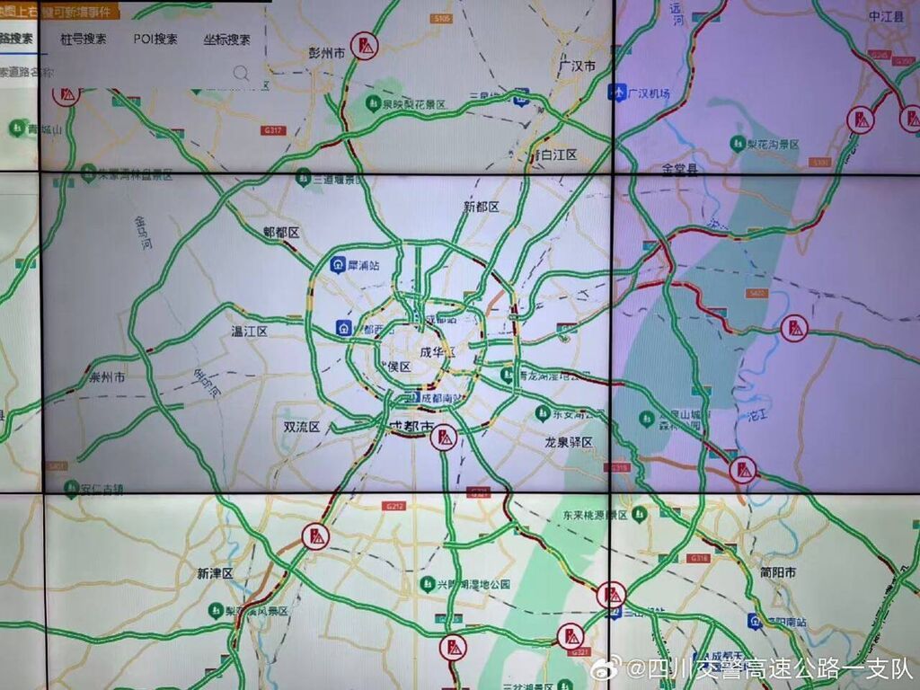 SA2成都第二绕城高速、SA3成都经济区环线高速与成都周边各条主线高速互通匝道枢纽位置可能出现车多排行情况。