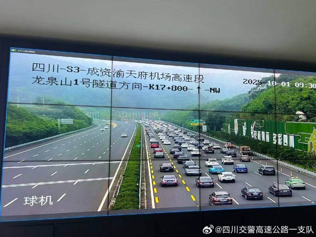 10月1日是国庆中秋假期首日,记者从四川高速公安一分局获悉,截至当天上午9时58分,成都周边高速部分路段车流量大出现排行情况,主要集中在以下路段: