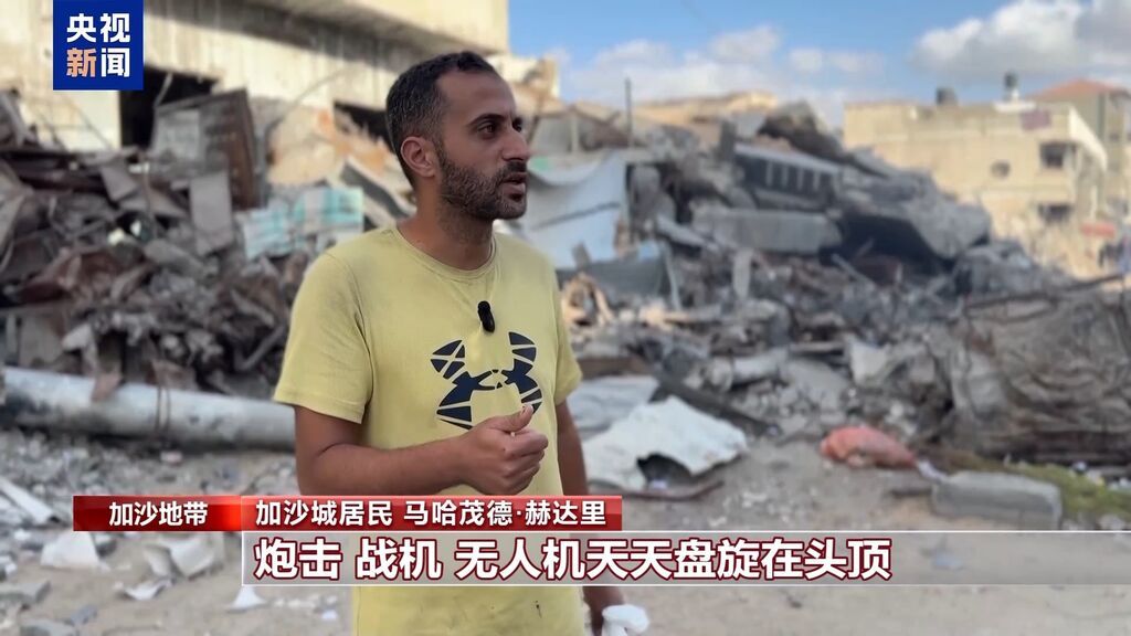 加沙城居民 马哈茂德·赫达里:炮击、战机、无人机天天盘旋在头顶。很多北部居民被迫按以军的命令南迁,他们(以军)说南部安全。可我们每天都听到南部被轰炸,有人死亡的消息。所以我们和家人决定留下,哪怕以军离我们只有一两条街,不到700米。