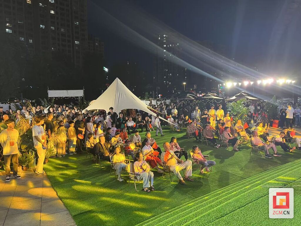 晚7时正,活动在激昂的氛围中正式启动。现场LED大屏滚动播放新中国成立以来的经典阅兵视频,瞬间点燃全场观众的爱国热情。随后,乐队倾情献唱《我爱你中国》,将现场氛围推向高潮,台下观众情不自禁挥舞手中国旗,齐声合唱,红色旋律响彻广场夜空。《红旗飘飘》《人间》《黄种人》《龙的传人》《如愿》《我和我的祖国》《歌唱祖国》等一首首脍炙人口的经典歌曲接连上演,引来掌声与欢呼声不断,每一名观众都用自己的行动表达着对祖国的深情祝福。