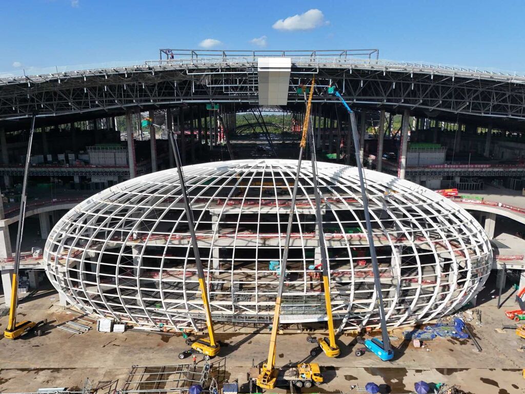 在成渝中线高铁施工现场,简州牵引变电所于10月1日顺利封顶,全线“四电”工程进入攻坚阶段。牵引变电所被誉为高铁的“心脏”,此次封顶的简州牵引变电所是成渝中线高铁的核心牵引供电设施。“我们抢抓国庆节点,为后续抢抓施工进度打下基础。”据中国中铁电气化局成渝中线高铁项目负责人介绍,项目部引入建筑信息模型(BIM)技术,通过三维建模预演建筑结构和管线排布,提前规避构件碰撞风险,为后续施工做好准备。