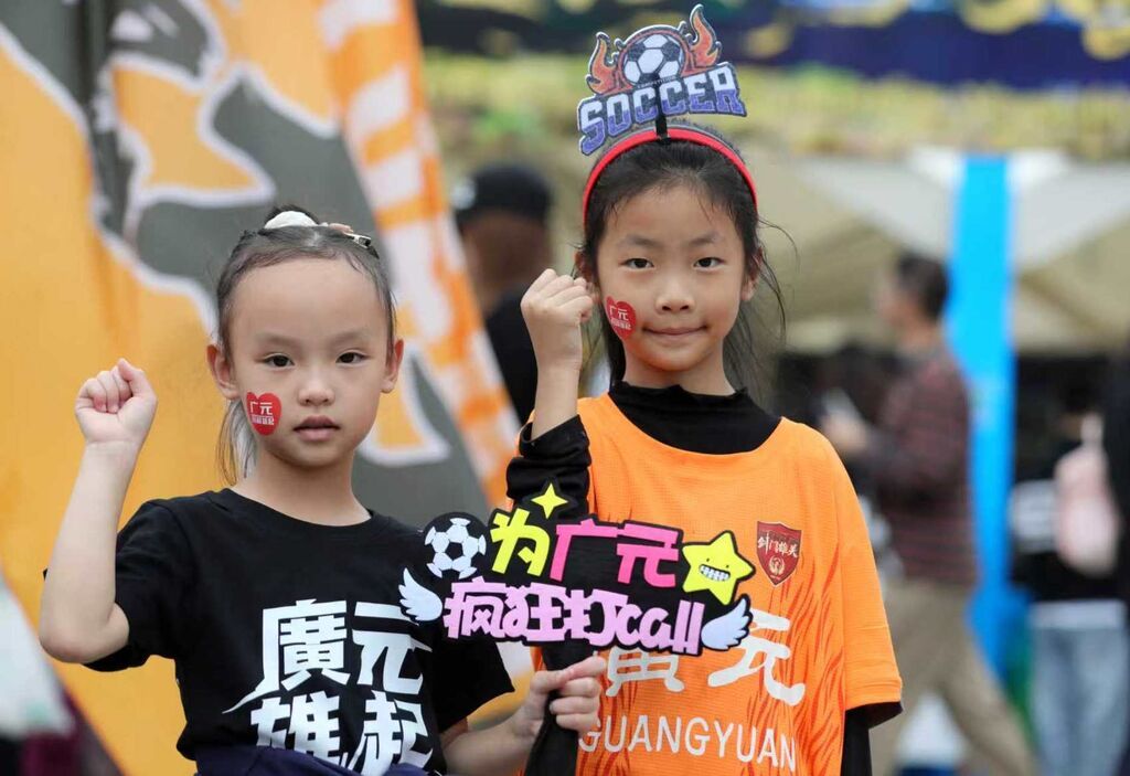 广元的小球迷在主场为自己的球队加油。(高志农 摄)