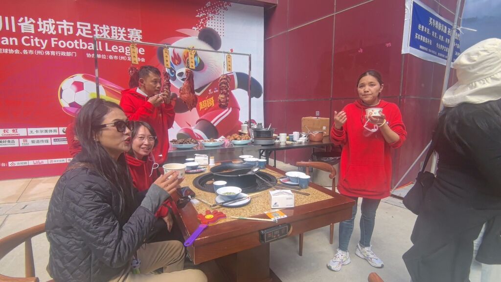 10月3日下午,在“川超”第二轮川北赛区甘孜州有机牦牛队与绵阳九洲长虹队的比赛落幕后,不少观众手持票根,涌向城区的特产店。