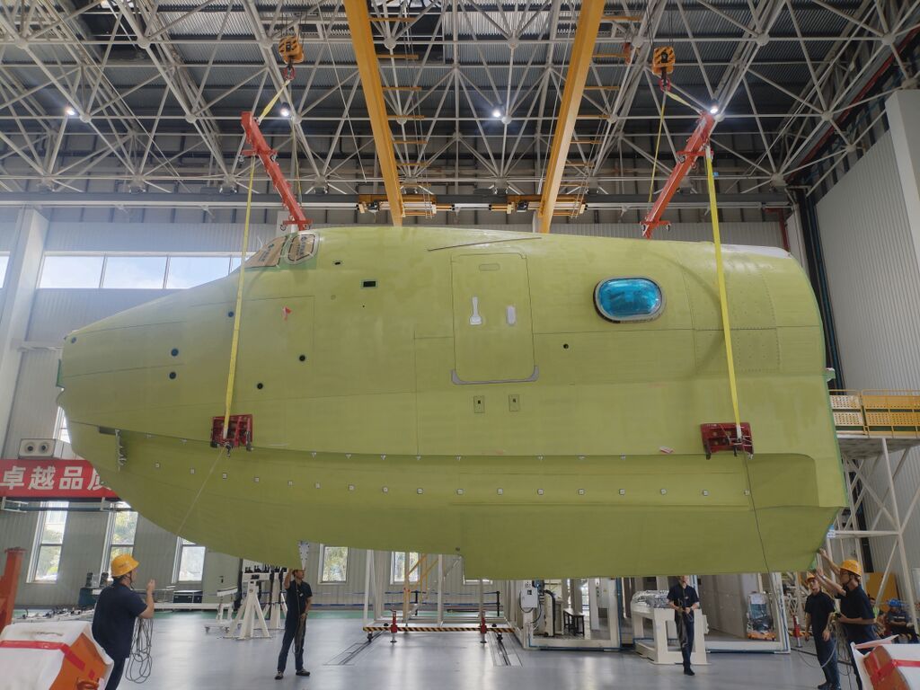 记者从中国航空工业集团获悉,近日,我国大型民用水陆两栖飞机AG600“鲲龙”批产第三架机(1103架)总装下线并圆满完成生产试飞,批产第四架机(1105架)机头大部件交付中国航空工业集团通飞华南,标志着AG600项目实现了从型号适航取证向小批量生产的重要跨越。