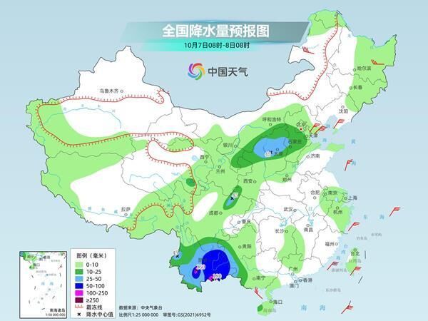 具体来看,中央气象台预计,今天,西北地区东部、华北中西部和南部、黄淮东部、四川盆地北部、华南南部和海南岛等地部分地区有大到暴雨,其中,广西南部、广东西南部、海南岛大部等地部分地区有大暴雨,广西东南部沿海、广东西南部沿海、海南岛北部等地局地特大暴雨(250~320毫米)。
