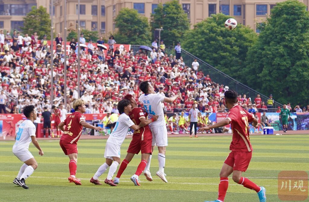 下半场比赛开始后,达州川汉子队先攻入两球,随后南充丝绸源点队追平比分。全场第94分钟,达州川汉子队11号刘洋博接禁区外一脚长传,禁区内迎球劲射,打入绝杀进球。终场哨响,比分定格在3∶2,达州川汉子队锁定胜局。