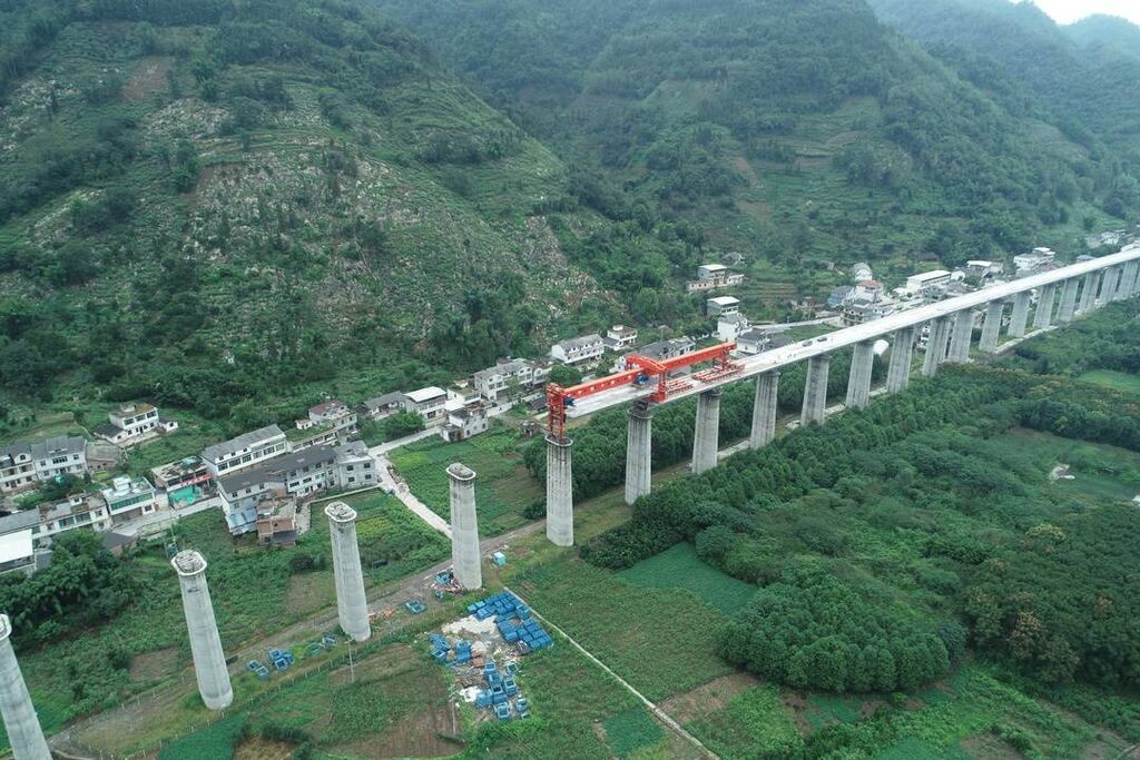 西宁至成都铁路热曲支沟1号特大桥架设现场
