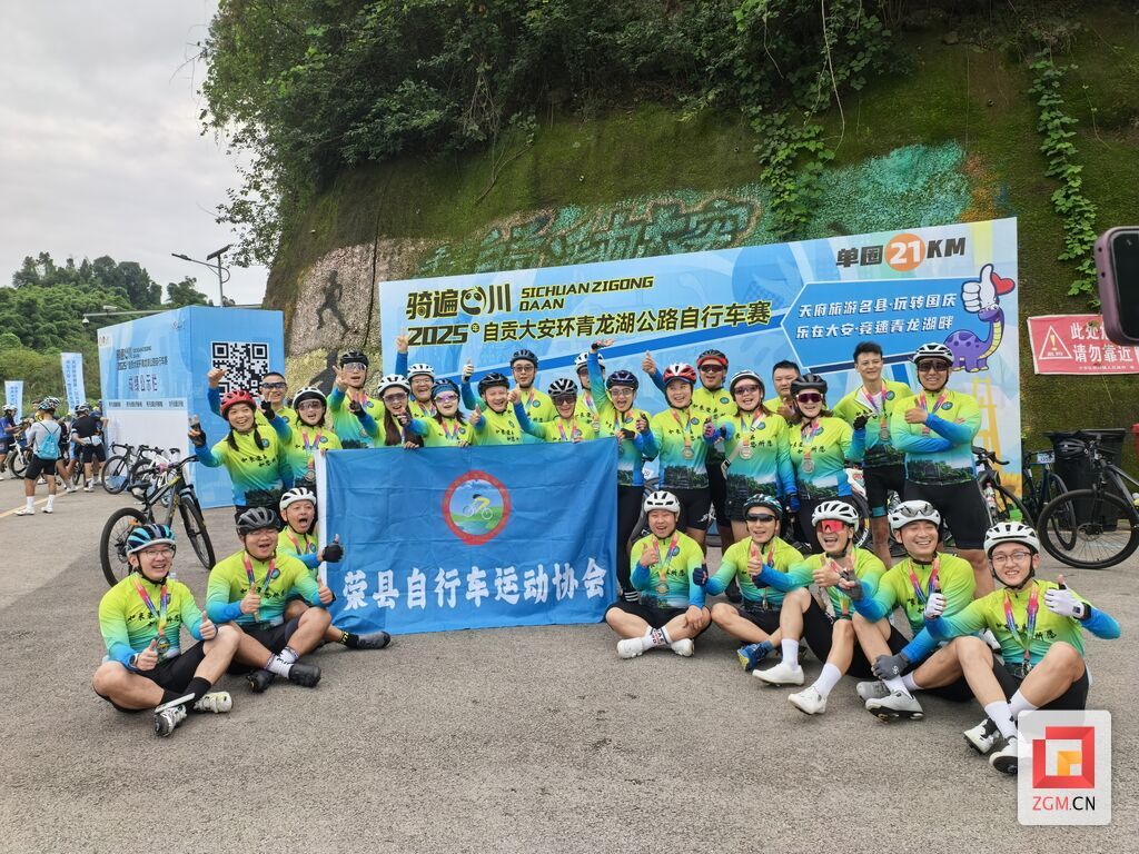 10月3日,“骑遍四川・2025年自贡大安环青龙湖公路自行车赛”热闹开赛,来自全国各地的骑行爱好者汇聚青龙湖畔,上演了一场速度与激情的较量。其中,一支格外亮眼的队伍来自荣县 —— 成立仅两个多月的荣县自行车协会,首次走出县域参赛,便凭借28名会员的凝聚力与拼搏精神,在赛场上留下了精彩印记。