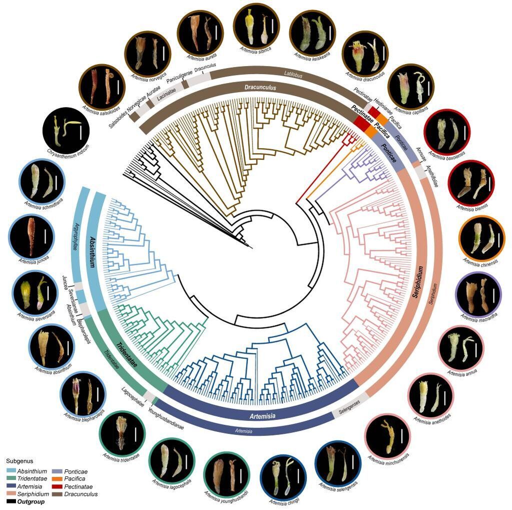 这项研究成果已在线发表于国际期刊《自然-通讯》。研究团队首次解析了20个形态性状的演化规律,并据此提出了一个全球蒿属植物分类新系统,将蒿属划分为8个亚属、24个组,使全属99.6%的物种有了细致的分类假说。