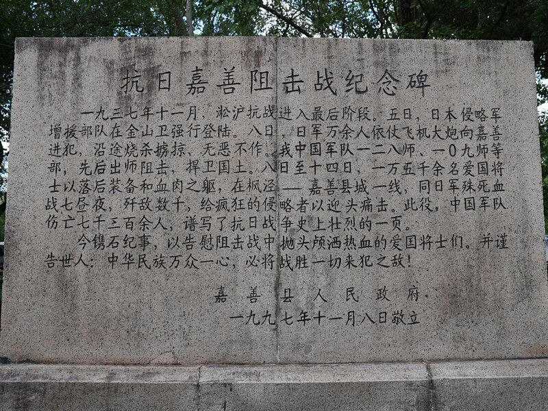 嘉善处于沪杭咽喉,地理和战略位置十分重要。1937年11月8日,当日军的飞机、大炮袭来,中国军人筑起血肉长城阻击敌人。