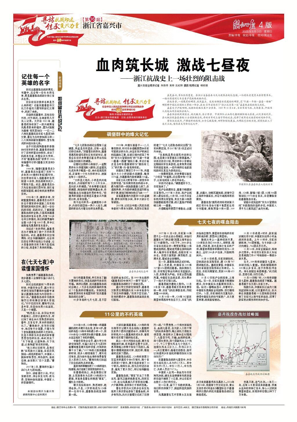 80多年前的七天七夜,是不容忘却的血色记忆。在1995年出版的《嘉善县志》中单列了一章节“抗日”,对嘉善阻击战进行了详细还原。