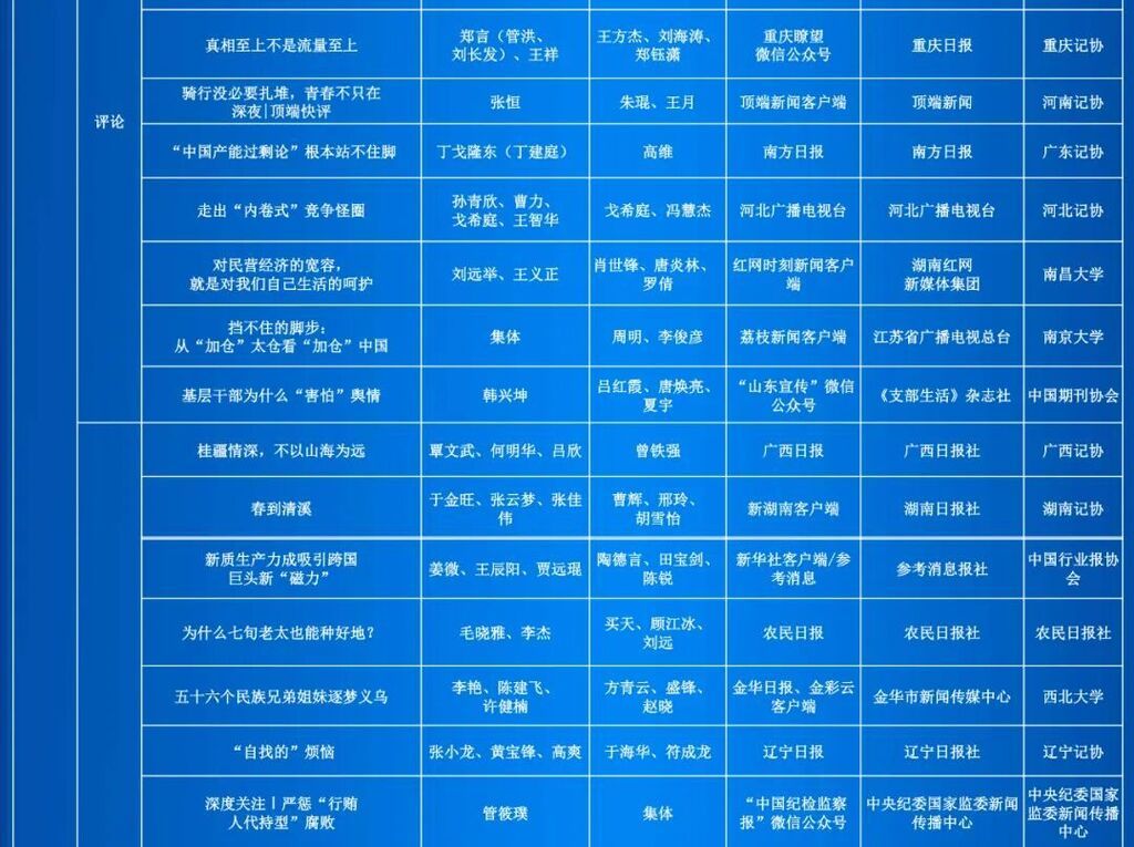 公示截止日期为2025年10月15日。在此期间,社会各界可通过电话、传真、信函或电子邮件等方式发表意见。中国记协评奖办公室将认真受理,按照评选办法规定对有关举报进行核查,并提出处理意见报评委会主任会议决定。