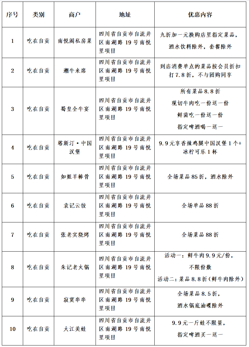 “川超·票根畅享”—优惠目录