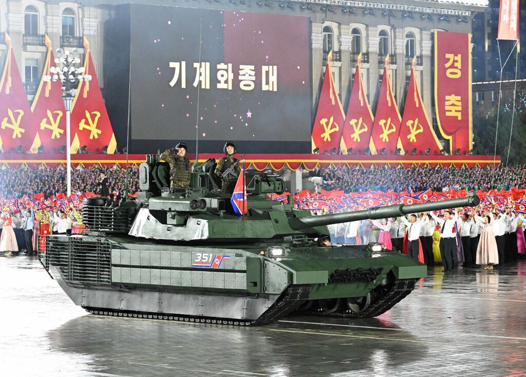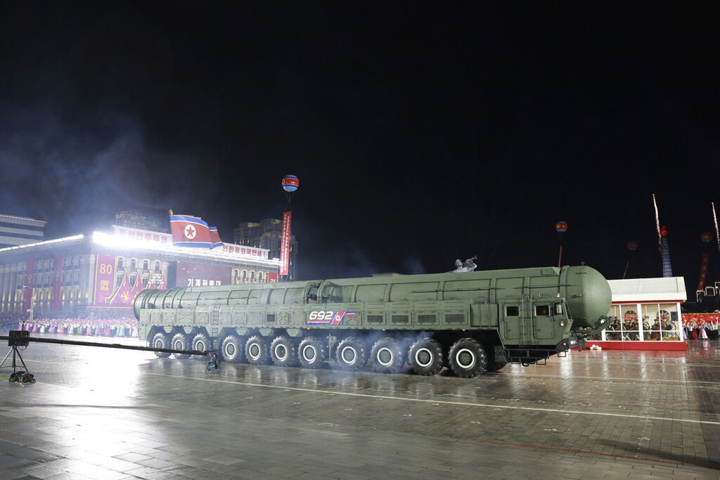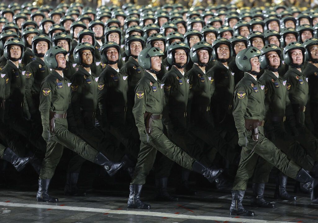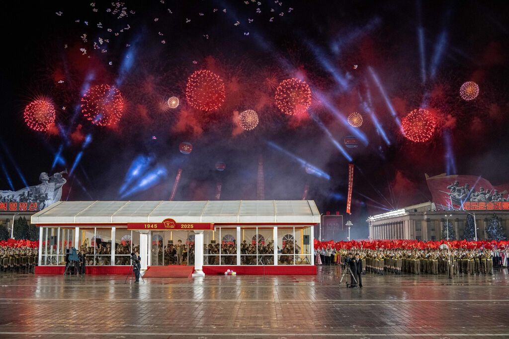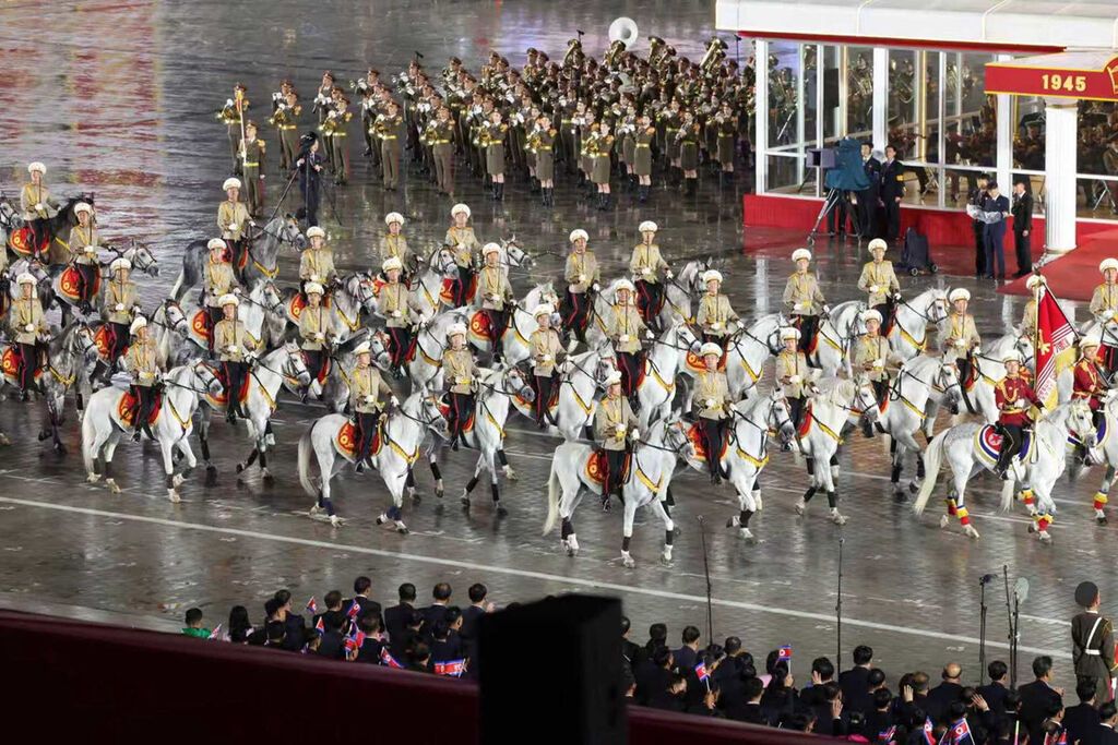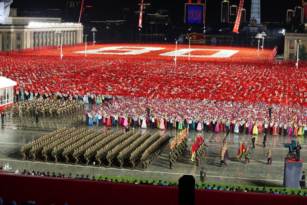 10日晚,朝鲜在首都平壤市中心的金日成广场举行盛大阅兵式,庆祝朝鲜劳动党成立80周年。朝鲜劳动党总书记、国务委员长金正恩在阅兵式上发表讲话。多国政要出席阅兵式。