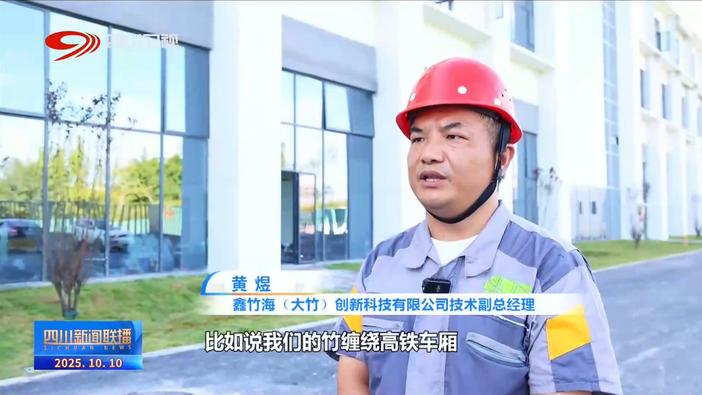 鑫竹海(大竹)创新科技有限公司技术副总经理 黄煜:比如说我们的竹缠绕高铁车厢,它具有资源可再生、低碳环保、施工安装方便、综合成本低、隔音保温、安全性能好等特性,符合国家提出的轻量化交通的发展要求。