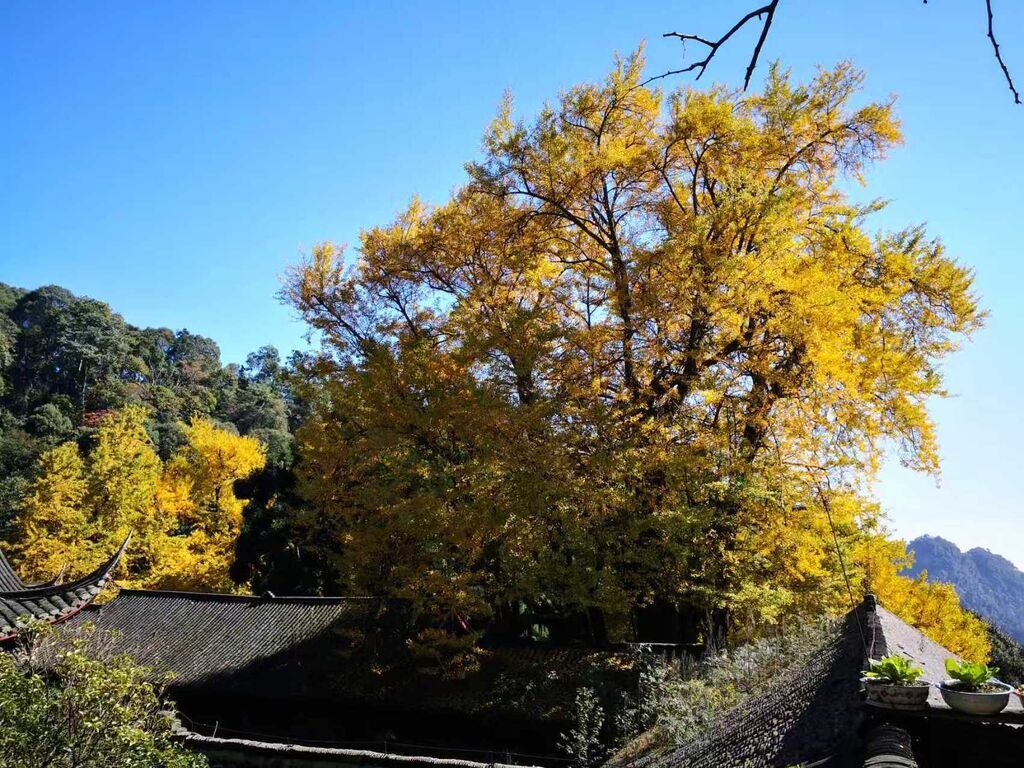 青城山古建筑群天师洞·天师银杏协同保护对象,包括青城山古建筑群天师洞和树龄约1900年的银杏。天师洞道观始建于隋大业年间(605—618年),现存建筑主要为清康熙年间重建。天师银杏位于“第五洞天”道观中,相传为东汉张天师手植,树高37米,冠幅25米,胸径2.5米,古树如塔耸立,气势雄浑,与天师洞古建筑群交相辉映,极具审美价值。该树具有厚重的历史文化承载,为青城山的“镇山之宝”,于2020年12月入选“四川十大树王”。