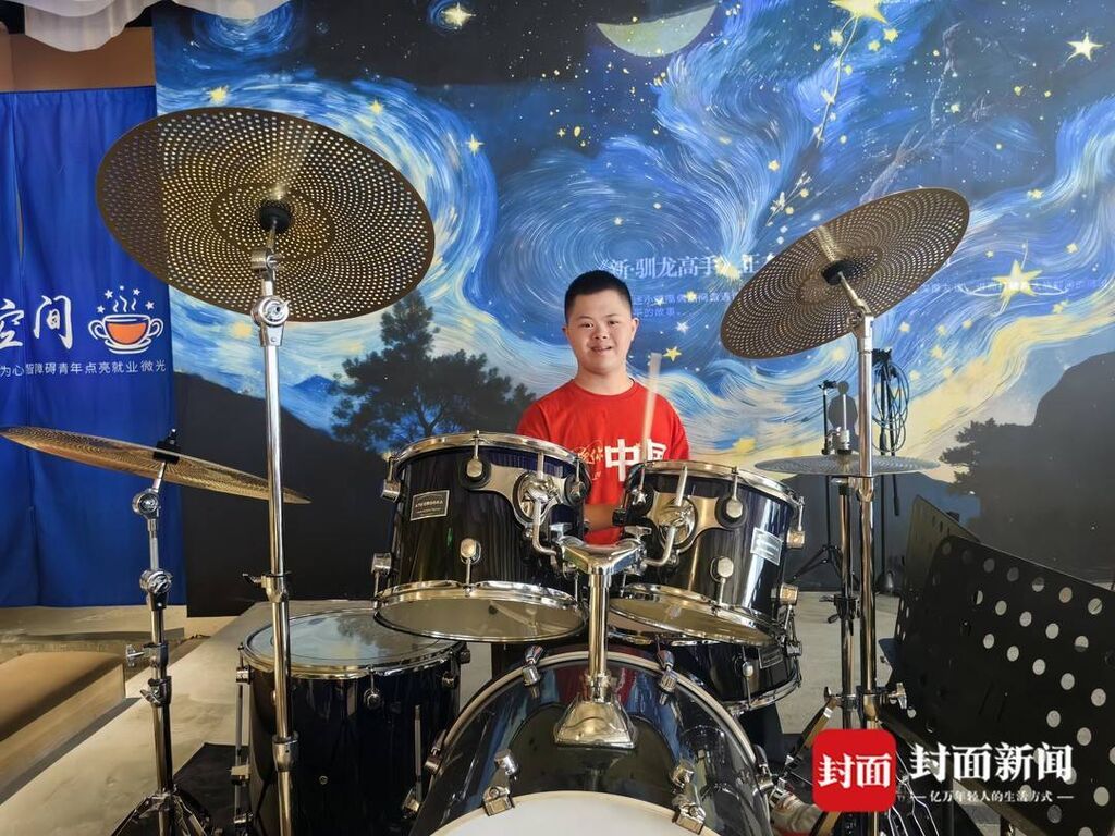“他是一个‘糖宝’,一出生就发现不对劲,当时的心情一下子从山峰降落到谷底。”飞扬妈妈唐传书回忆起了孩子的成长经历。飞扬从5岁开始做康复,8岁学打架子鼓,10岁开始外出表演,18岁的他在咖啡店找到了第一份工作。