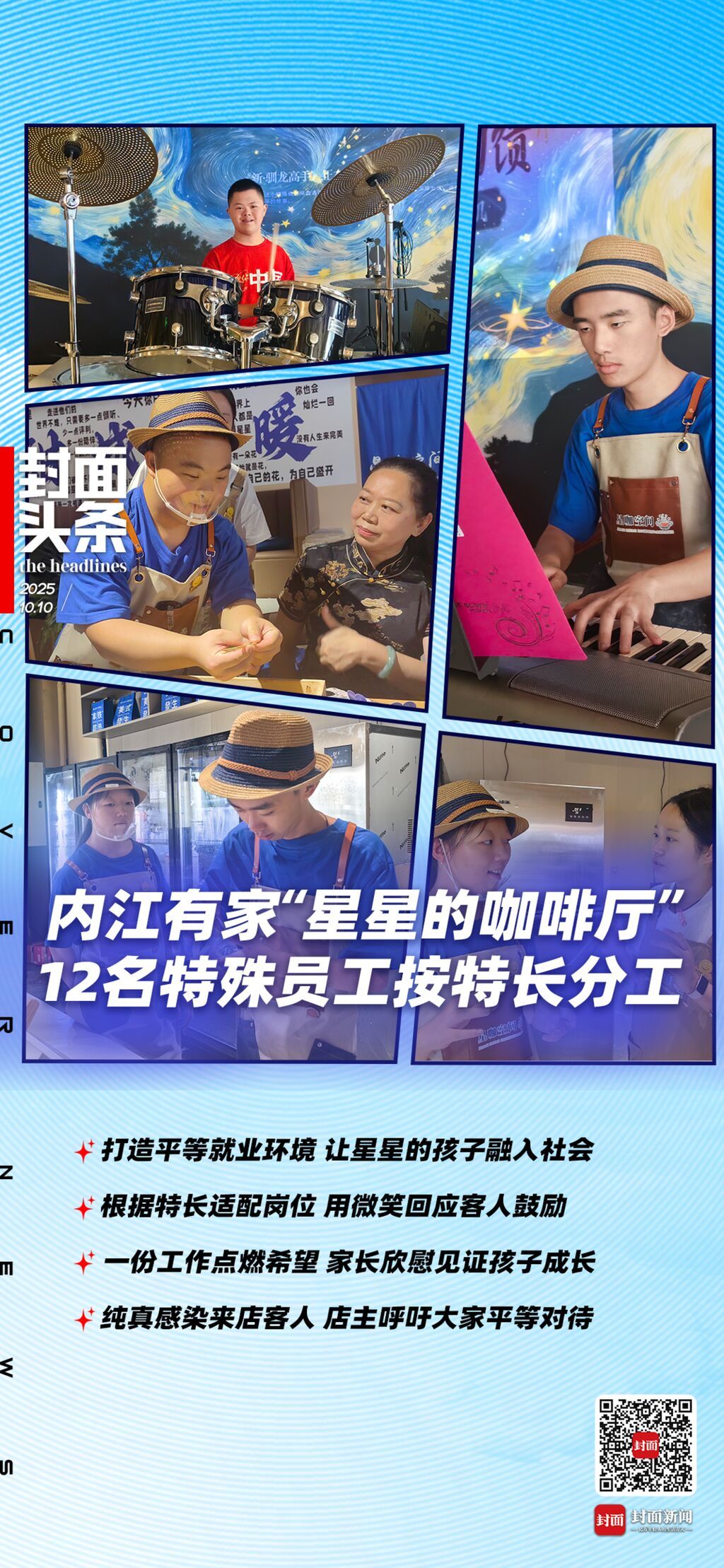 这个国庆节,四川内江一家新开业的咖啡店引起了不少市民的关注,这家店内有12名员工都是心智障碍青年。孤独症患者、唐氏综合征患者、智力障碍者,在这里他们被统称为“星员工”。