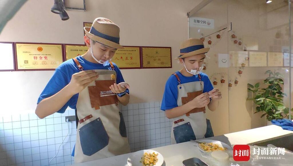 咖啡店根据每一位“星员工”的特长适配不同的岗位,语言表达能力突出的阳阳,被安排在门口接待客人;喜欢安静做手工的天天,在透明厨房里专注包饺子;总挂着治愈笑容的文文,成了服务员;拥有音乐天赋的飞扬,则专属舞台上的架子鼓……他们的闪光点恰好落在了最适合的位置上。
