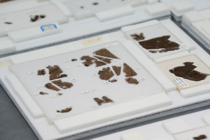 记者了解到,帛书于今年9月10日运抵湖南省博物馆后,已完成14天环境适应观察,经无损评估后保存于恒温恒湿环境中。目前,馆内已完成全部帛书的标准化影像采集,并在一片未完全剥离的帛书上发现肉眼不可见的墨迹字样40余个。