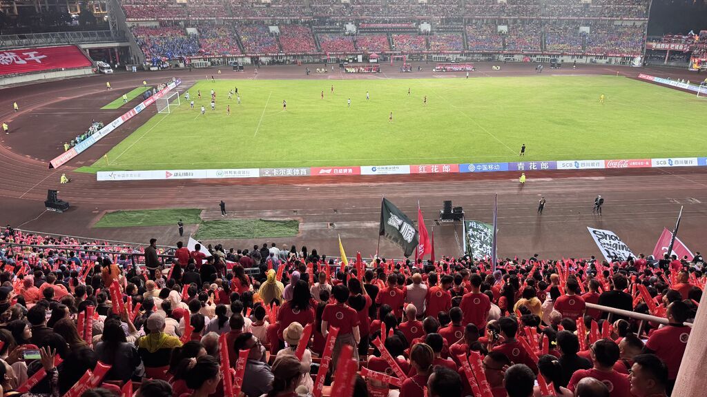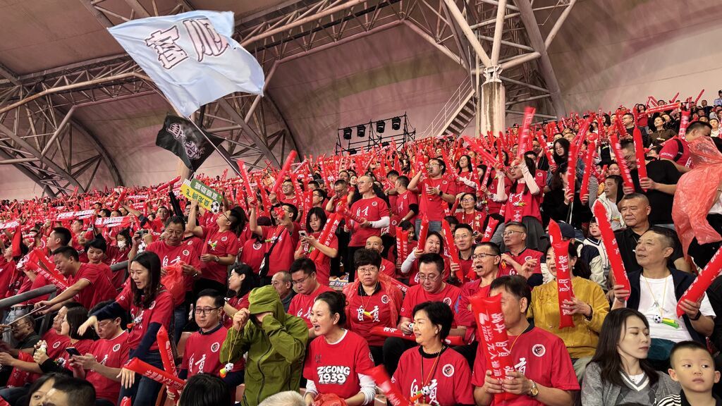 10月12日晚,自贡南湖体育中心的灯光穿透濛濛秋雨,川超联赛自贡灯城燊龙队对阵资阳中国牙谷队的焦点战在此上演。看台上,一支由富顺球迷组成的助威方阵格外醒目,他们身着统一红衣,高举“燊龙腾飞,富顺助威”的横幅,用震耳欲聋的呐喊,将盐都儿女的热血与赤诚洒满赛场。