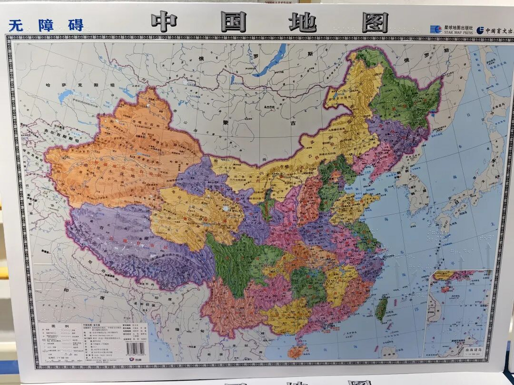 ·13日,在第42个国际盲人节到来之际,国内首套无障碍版《中国地图》和《世界地图》在中国盲文图书馆发布。