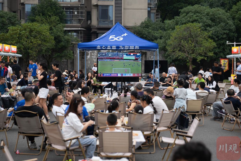 赛场内,比赛激战正酣。赛场外的美食集市里,也坐满了前来观赛的球迷和游客,大家一边看着电视机里的球赛转播,一边品尝着钵钵鸡、鲜榨果汁。“观赛之余,不少人也会选择到美食集市里来进行消费。”凌晓莉说。