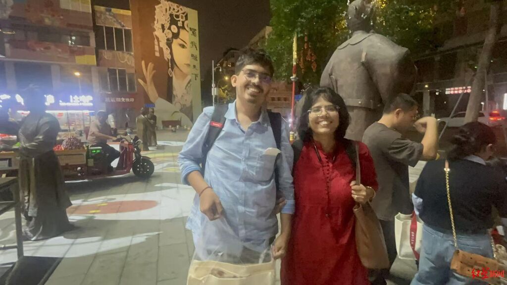 ▲看川剧是印度的索米亚和里亚来成都的“第一站”