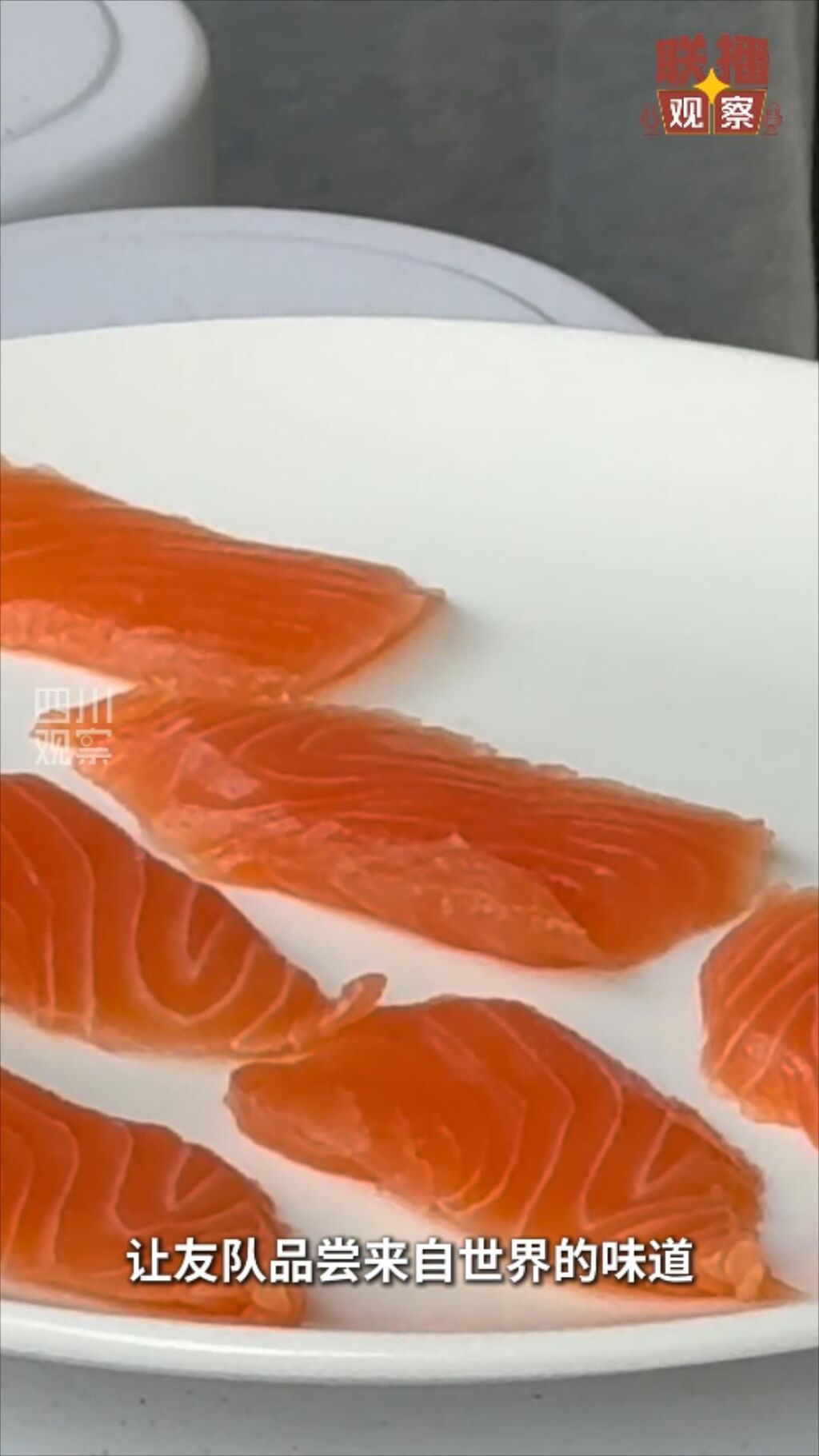 大大方方宠客人,这是一场精心设计的“城市告白”。赛前,成都锦城队送上冰鲜三文鱼,让友队品尝来自世界的味道,感受三文鱼从北欧捕捞到成都餐桌最快48小时直达的双流领“鲜”速度。来而不往非礼也!广安队也亮出自家宝贝——龙安柚果汁,龙安柚作为秋天的硕果,更寓意两队在本赛季都能硕果累累,取得佳绩。