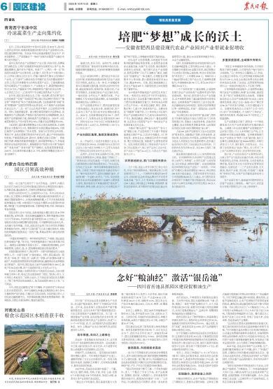 良田之上建粮仓。园区2025年种植粮油作物共45.2万亩,其中油菜15.09万亩,水稻30.11万亩。王洪伟介绍,旱地轮作的油菜收获后,种植玉米和高粱,油菜总产量能达到2.15万吨,水稻总产量16.47万吨。