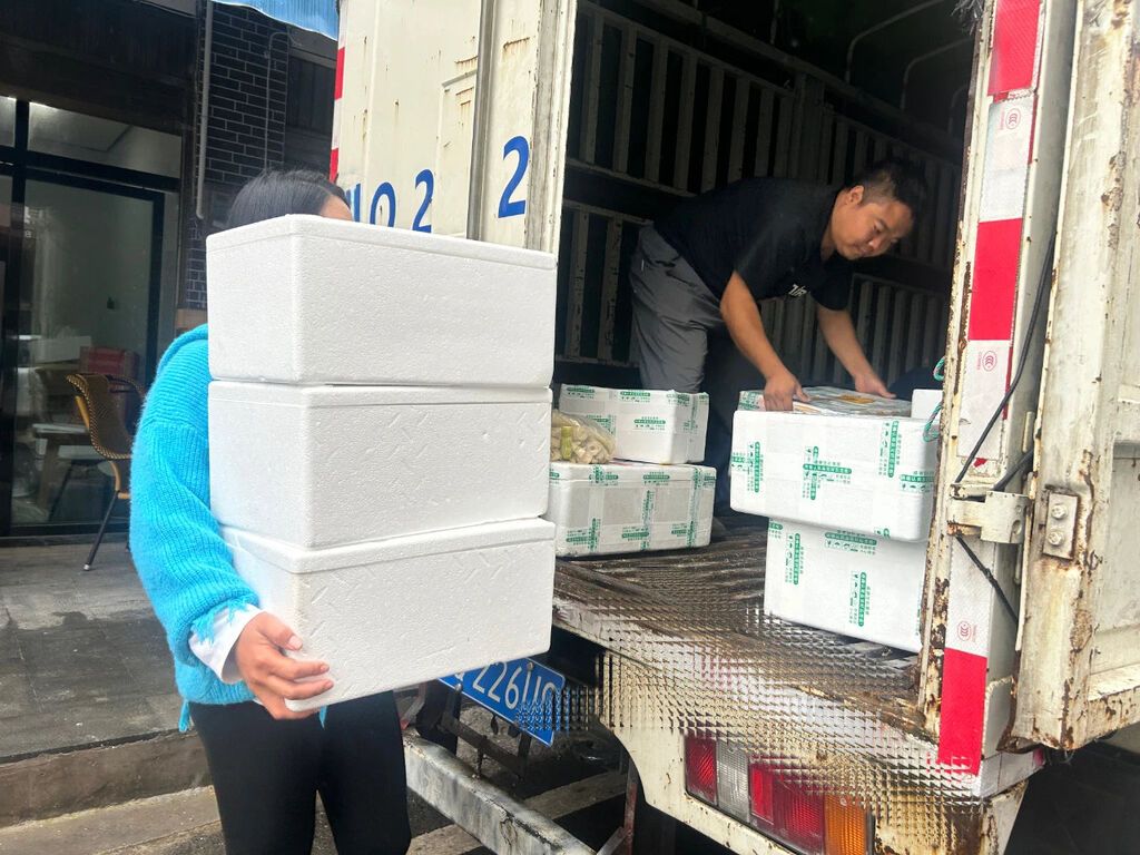 成箱的鲜笋借助泡沫箱和冷藏车运往各地市场。 兴文县融媒体中心供图
