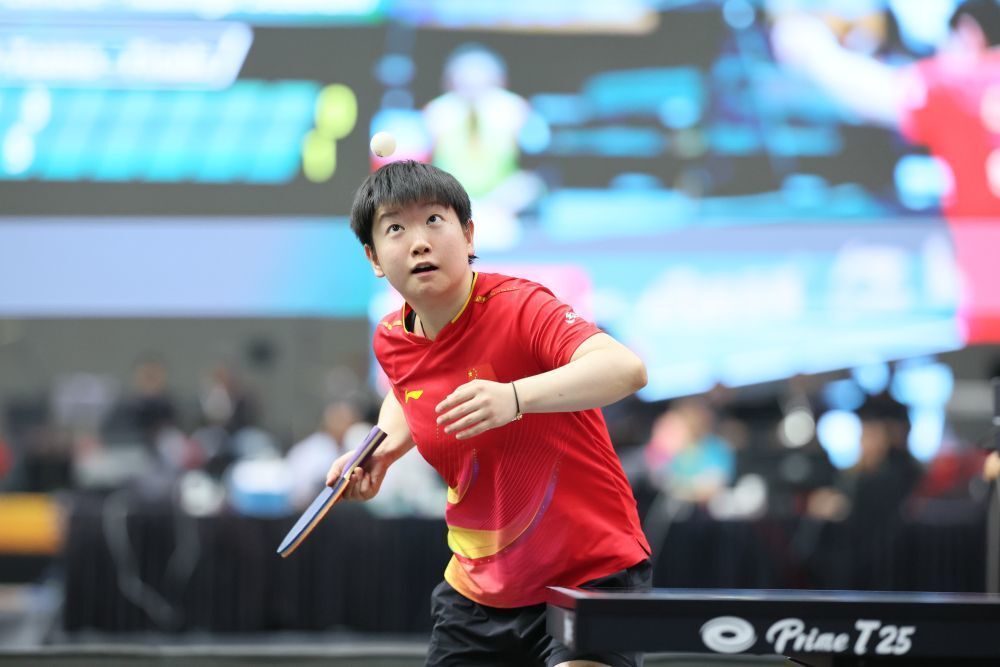 首先进行的是女团决赛,国乒女队对阵日本女队。首盘,王曼昱对战日本“削球手”桥本帆乃香,王曼昱在10:12先输一局的情况下,通过主动进攻与落点控制,以11:3、11:6、11:3实现“让一追三”,为中国女队拿下第一分。