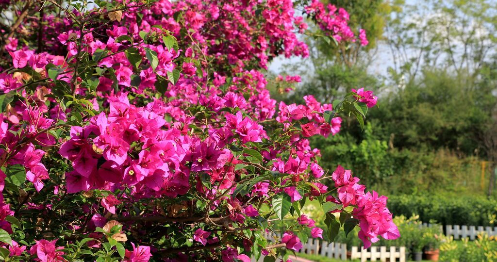 远处的三角梅开得热烈奔放,艳丽的紫红色与碧绿的枝叶相映成趣;而各种颜色的百合花在花田一角静静绽放,气质清雅,用姿态装点着秋色。