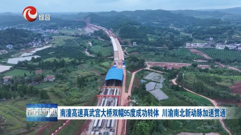 此次转体成功,为南潼高速全线贯通按下“加速键”。作为川渝南北向重要通道,南潼高速全长60.68公里,双向四车道设计,时速100公里。项目通车后,潼南至南充车程将压缩至40分钟。