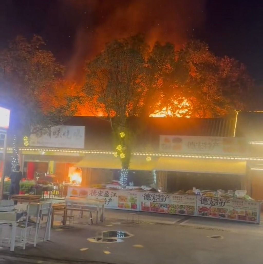·云南芒市珠宝小镇一烧烤摊发生火灾,无人员伤亡。