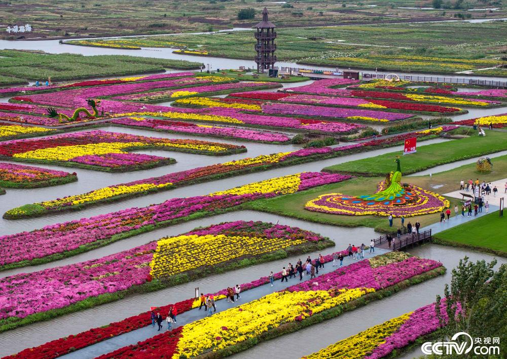 10月18日,金秋时节,江苏兴化千垛景区万寿菊竞相开放,吸引游客观赏。