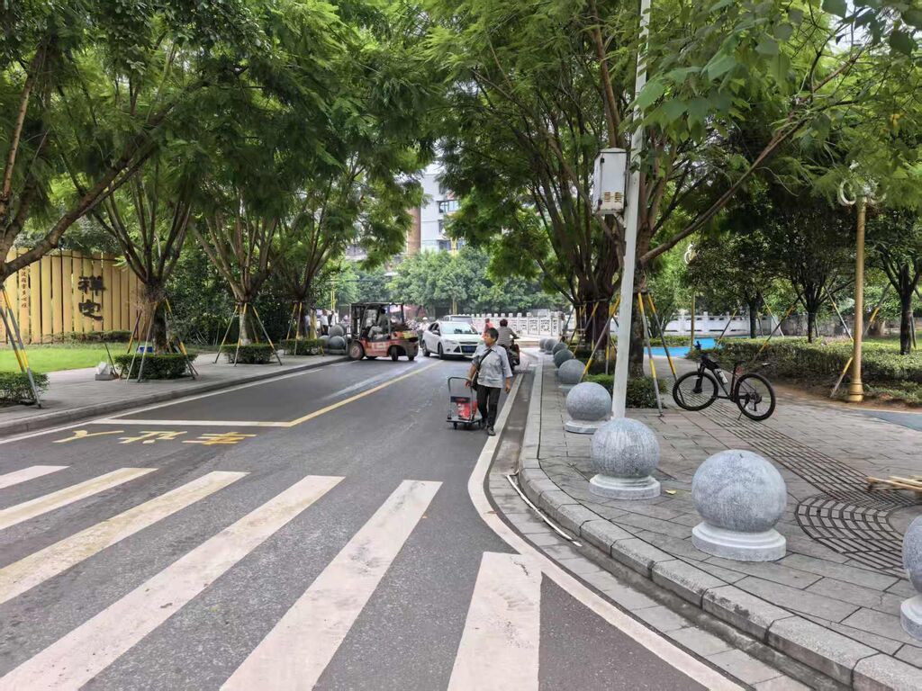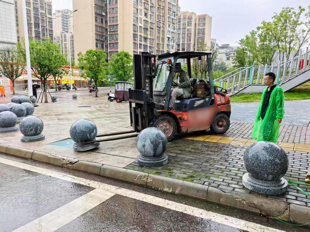“花岗石球防撞石墩的安装,既能有效管控车辆通道、杜绝违规停放车辆挤占公共空间,又能防范车辆冲撞风险,为市民划出休闲“安全区”。”该工程相关负责人介绍说。