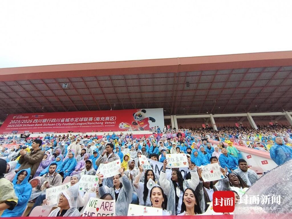赛场上,球员们奋力拼搏;看台下,中外球迷并肩欢呼。川超赛场就像一座桥梁,连接起不同国家的热情,也让这座川东城市以更加开放的姿态,展现着独特的魅力。